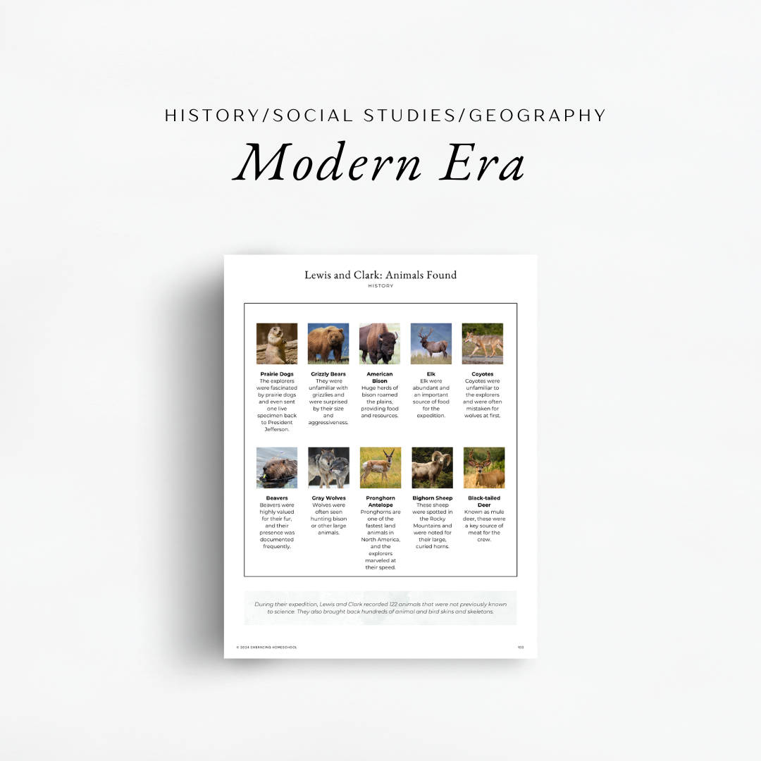 You will be taking a journey back in time to the Modern Era through simple, yet, captivating history, geography, and social studies lessons. You'll be diving into our world's history from The Enlightenment to the times of the Old West.