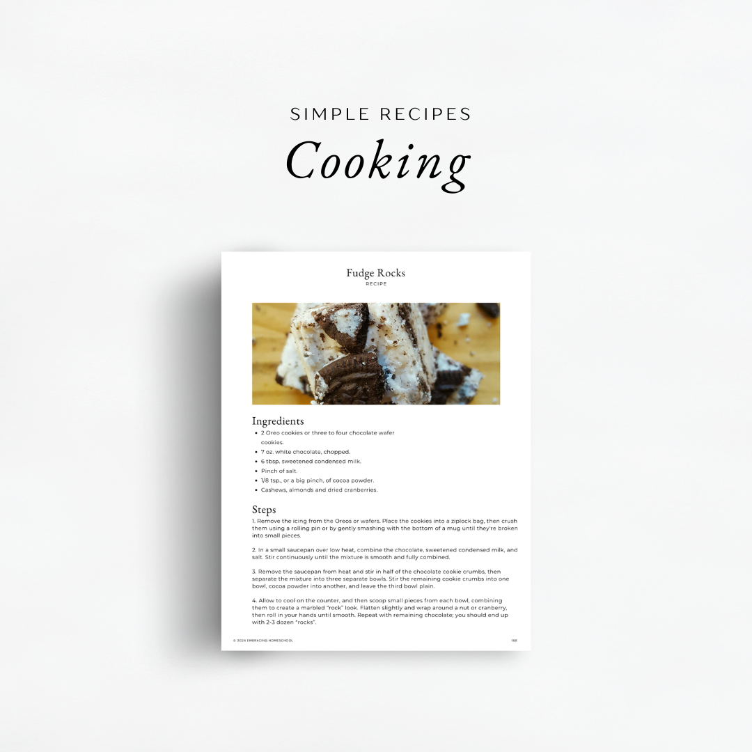 Say goodbye to the days of monotonous textbooks and uninspiring lessons. The Simplified Feast includes an extensive array of subjects such as scripture memorization, composer and hymn study, artist and picture study, poetry, writing activities, history, home economics, geography, science, handicrafts, tea time, nature study, and more – all within a single, open-and-go curriculum. Long gone are the days of just getting through the basics each day!