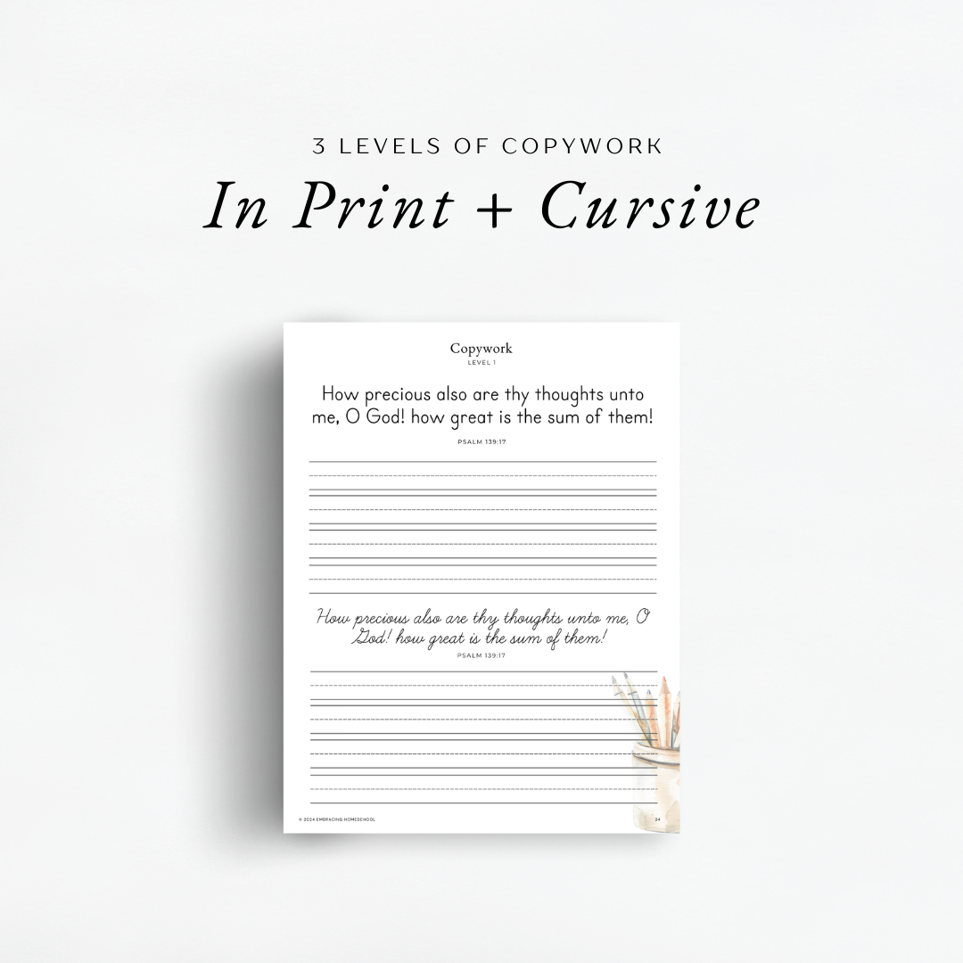 Copywork: Various poems, scripture, and passages